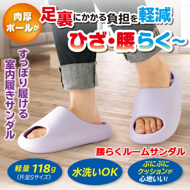 レディース腰らくルームサンダル(腰楽 腰がラク 腰らく 女性用 室内履き ぷにぷにクッション 肉厚ボール 厚底ソール 体圧分散 丸洗い 軽量 負担軽減)
