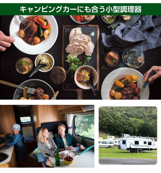 ★当店がキャンピングカーやアウトドアでの使用にオススメするコンパクト調理器具★ 一枚焼きで、置き場所に困らない。 狭いキッチンでも場所を取らず、収納も簡単。 小型なのにしっかり焼ける「両面焼き」。 トーストだけでなく、焼き菓子やグラタンなど幅広い料理が楽しめます。 30分以上の調理時間の長いメニューにも対応します。 シンプルなダイヤルやボタンで、手軽に使え、忙しい朝にも便利。 小型なので、電気代を抑えつつ、必要な分だけ加熱できる。 |