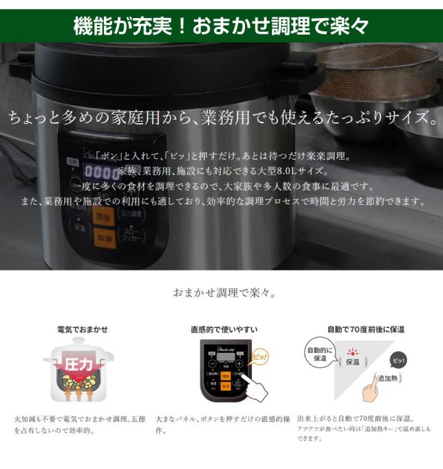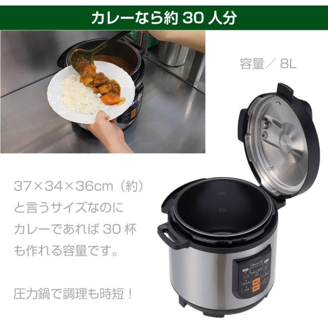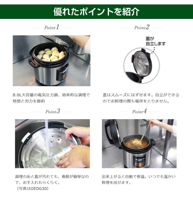 ワンダーシェフ(Wonder chef)マイコン制御 電気圧力鍋 8L OEDF80 | 圧力鍋 多機能 キャンピングカー キッチンカー アウトドア キャンプ グランピング 持ち運び ポータブル電源 家電 調理 キッチン 便利 イベント 業務用 大容量