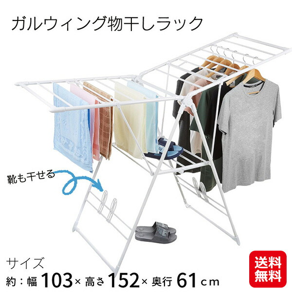 ガルウィング式物干しには101cmの物干スペースがあり、場所を選ばず効果的な空気乾燥ができます。【送料無料/ポイント 倍/配送の目安5〜7日程度】
