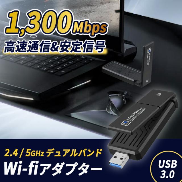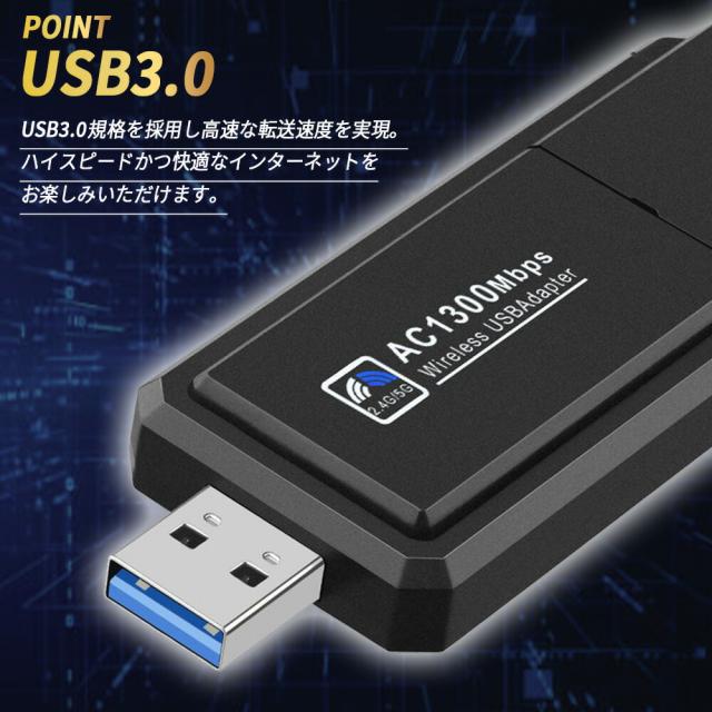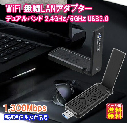 【デュアルバンド WiFi 無線LANアダプター 1300Mbps 2.4G/5G USB3.0】【メール便送料無料】