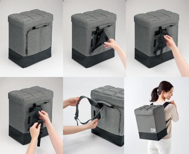 2. 普段は玄関チェアとして、災害時にはリュックに変身する2WAY仕様。