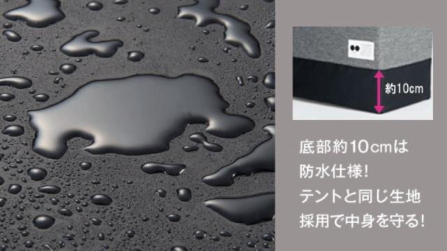 バッグ底から約10cmはターポリン生地で防水仕様。