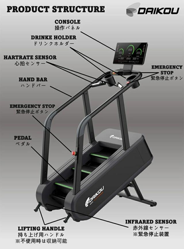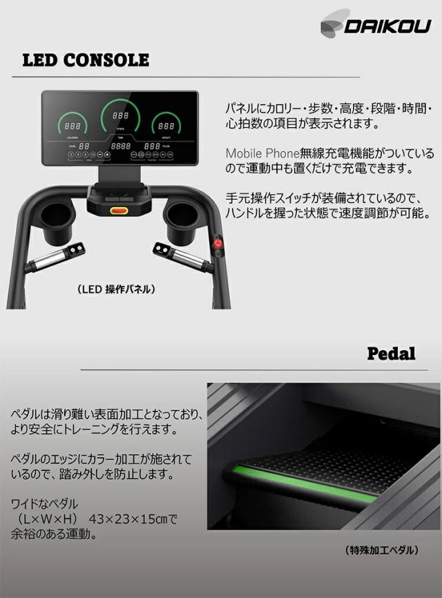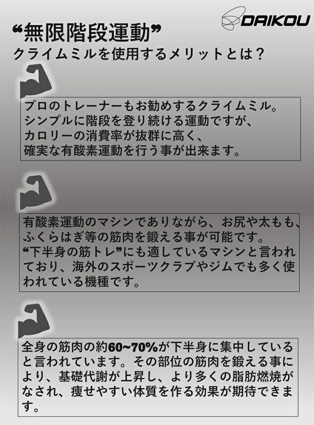 1月上旬出荷|【DAIKOU 準業務用 クライムミル DK-LT04EB】【送料無料】 フィットネスマシン クライムミル ダイエット 山登り トレーニング トレーニングマシン 階段登り 階段昇降 下半身 クライミングマシン 有酸素運動 スマホ充電 ダイコウ