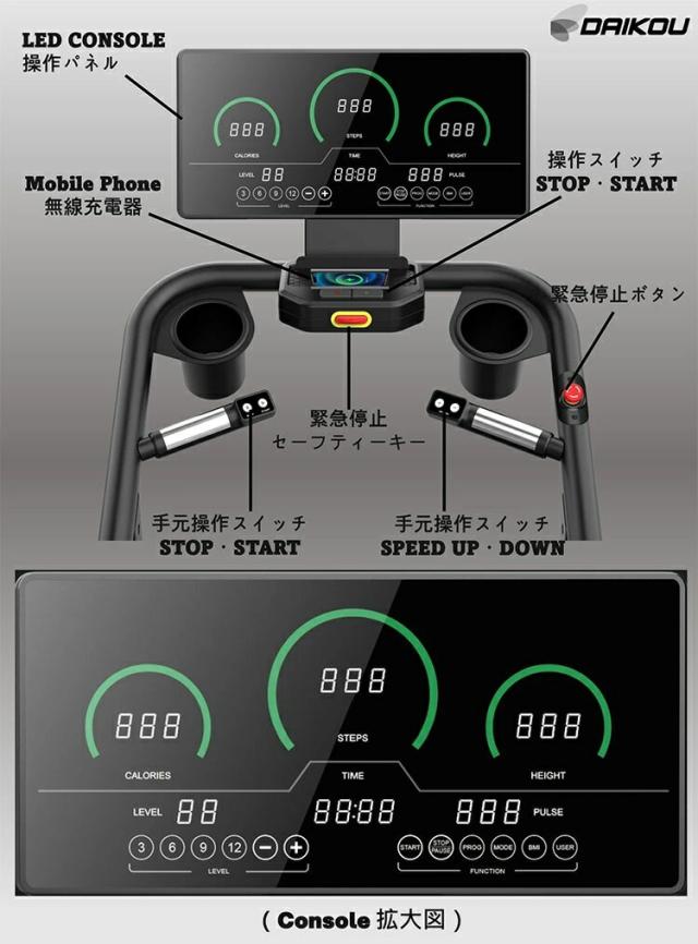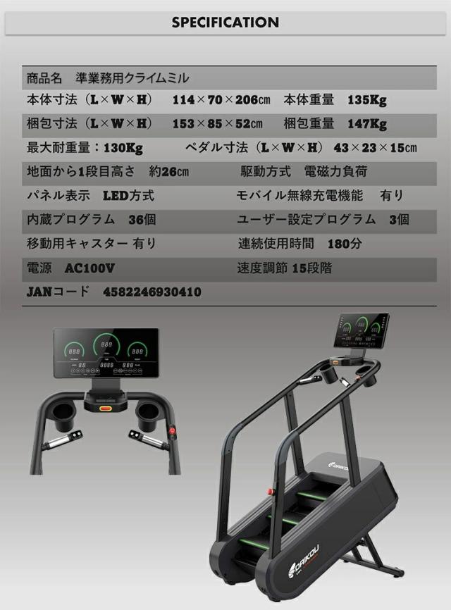 ■様々なご要望にお応えします【DAIKOU 準業務用 クライムミル DK-LT04EB 送料無料 ポイント 2倍〜5倍 フィットネスマシン クライムミル ダイエット 山登り 無限階段運動 トレーニング トレーニングマシン 階段登り 階段昇降 下半身 クライミングマシン 有酸素運動 速度調節 15段階 心拍測定 スマホ充電 モバイル無線充電 大広 ダイコウ daikou】