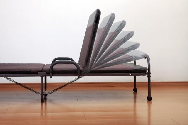 >>>>>コンパクト収納できる便利なリクライニング仕様のベッド。