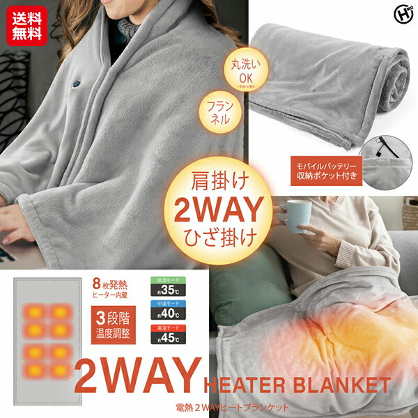 【電熱2WAYヒートブランケット HED-7400】【送料無料】 着るブランケット フランネル 電気ブランケット 洗える ひざ掛け 2way 電気 毛布 デスク ヒーター内蔵 USB給電式 ブランケット 電気ひざ掛け USB 着る 電気毛布 タイマー 温度調節 sd