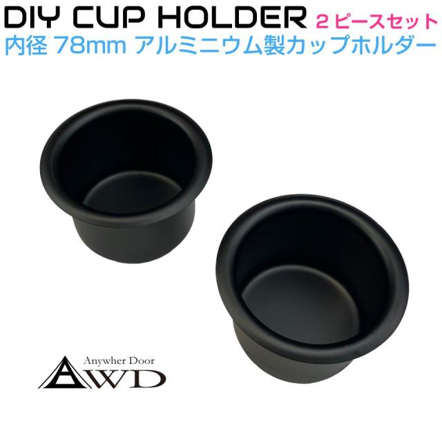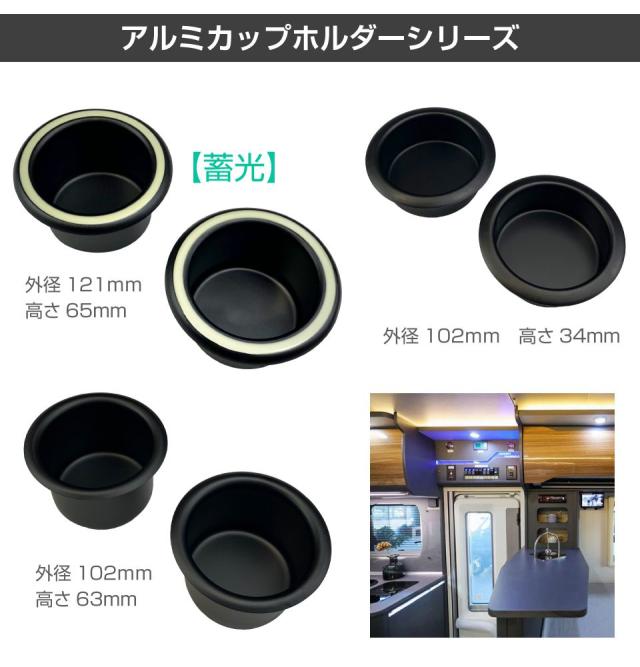 キャンピングカー パーツ DIY アルミ カップホルダー マットブラック 内径78mm×外径102mm×高さ63mm 2個セット AWD-ALC-BK63 | ドリンクホルダー テーブル カップ ペットボトル 内装 資材 部品 キッチン 車中泊 カスタム 改造 自作 軽キャンピングカー キッチンカー