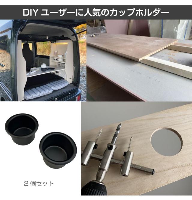 カーアクセサリー ハイエース エブリイ 車載 増設 汎用 DIY 介護車両 アウトドア キャンプ 飲み物 ドリンク 2個 黒 カスタム インテリア