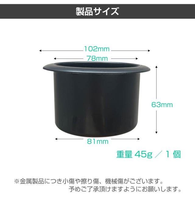 | 商品名 | DIY アルミ カップホルダー マットブラック 内径78mm×外径102mm×高さ63mm 2個セット |