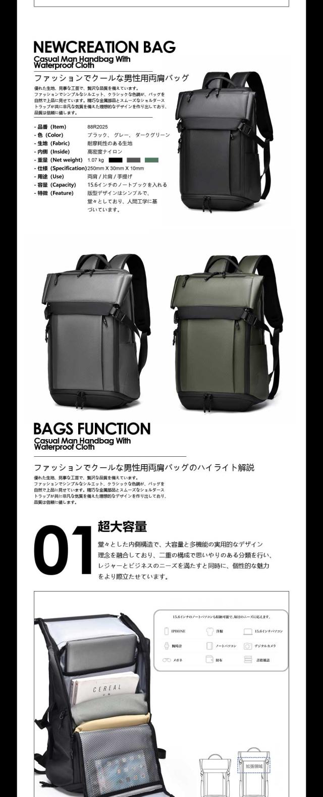 ■大容量:多層に分けて収納できます。分類ポケットがたくさんあるため、簡単にアイテムを整理することができます。15.6インチのノートパソコン収納スペースがあり、教科書、A4サイズの書類、タブレット、小物もメインポケットに簡単に収納することができます。