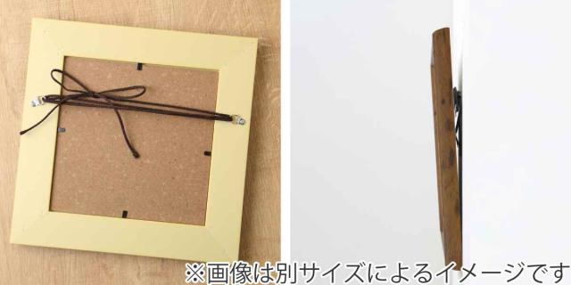 吊り金具付きのフレームです。フレーム裏面の吊り金具に付属の紐を結び、壁掛け金具に掛けて壁の好きな位置に飾れます。