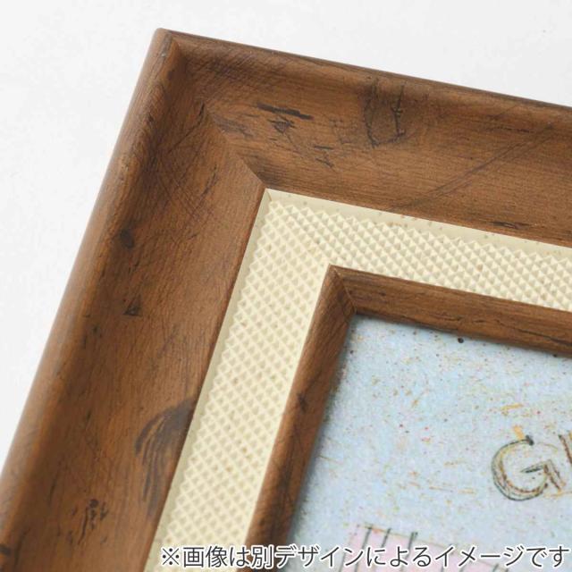 アンティーク加工の施された、木目調の樹脂製フレームです。