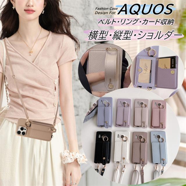 スマホケース 手帳型 アクオス R9 Wish4 AQUOSセンス9 背面手帳型ケース AQUOSセンス8 AQUOSセンス7 プラス AQUOSセンス6S スマホケース カバー ショルダー AQUOS wish4 R9 wish3 R8 Pro 背面カードケース カラビナ リング付き 背面 カード収納 カード入れ バンド付き