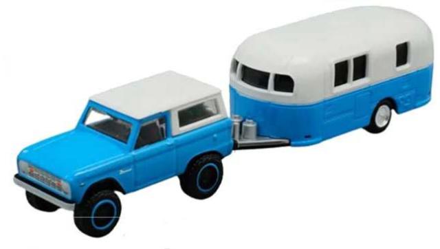 Maisto MUSCLE TRANSPORTSシリーズ 1/64 1966 フォード ブロンコ/キャンパー トレーラー ブルー/ホワイト です。