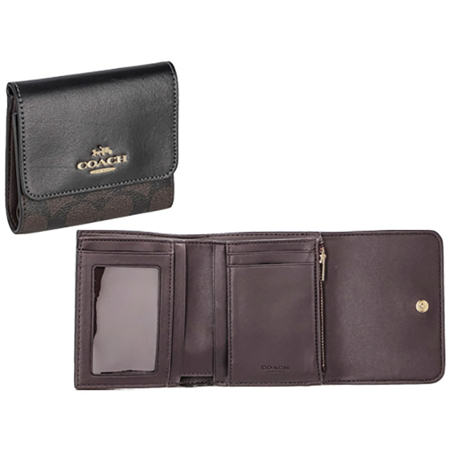 コーチ 三つ折り財布 メンズ レディース ブランド COACH シグネチャー CE930 IMAA8 ブラック/ブラウン ウォレット 高級 おしゃれ プレゼント 実用的