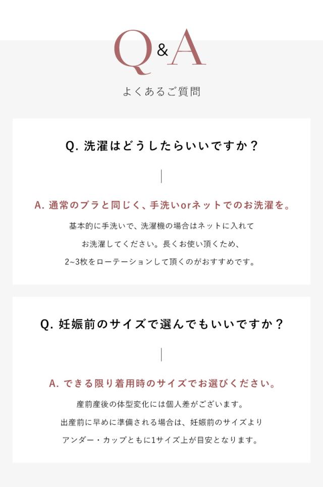 忙しい毎日でも、変わらない「自分らしさ」を大切に。 授乳中の快適さだけでなく、卒乳後のバストのことも考え、下着専門店が設計したこだわりのマタニティブラ。 心地よさと女性らしさを兼ね備えた一着が、日々のあなたにそっと寄り添います。 ■授乳もスムーズなカシュクールデザイン 片手でカップを引き下げるだけで、赤ちゃんを待たせることなくスムーズに授乳。 伸縮性のあるカップがバストのサイズ変化にも柔軟に対応。妊娠中から卒乳後まで長く使えます。 ■締め付けずストレスフリー 柔らかく太めの肩紐が肩への負担を軽減し、リラックスした着心地を実現。 ノンワイヤー&ボーンなしで、締め付け感ゼロ。長時間着けても快適さが続きます。 ■気分が上がる上品な大判レース 華やかさと女性らしさを演出し、日常に特別感をプラス。 ■敏感肌に優しい素材 ブラもお揃いショーツも綿95%の柔らかな生地で産前産後のデリケートな女性の肌に優しく寄り添います。 ■マタニティショーツ フラワーレースを贅沢にあしらったデザイン。 ウエスト部分のV字カーブがお腹を優しくサポートし、 お腹が大きくなっても苦しくなりにくい設計です◎ ![]() ![]() ![]() ![]() ![]() ![]()