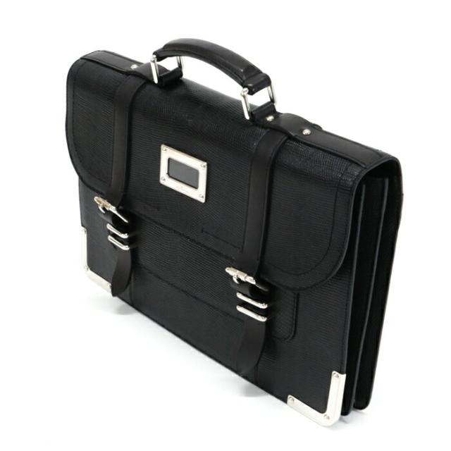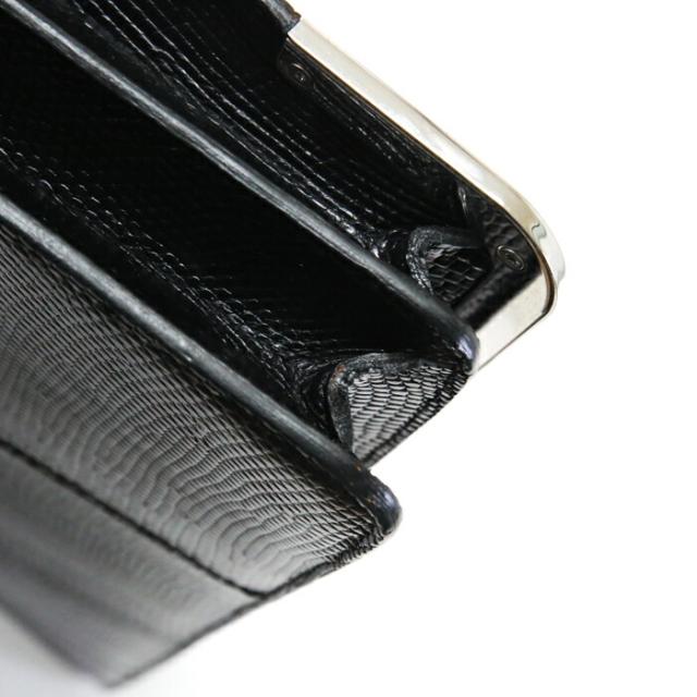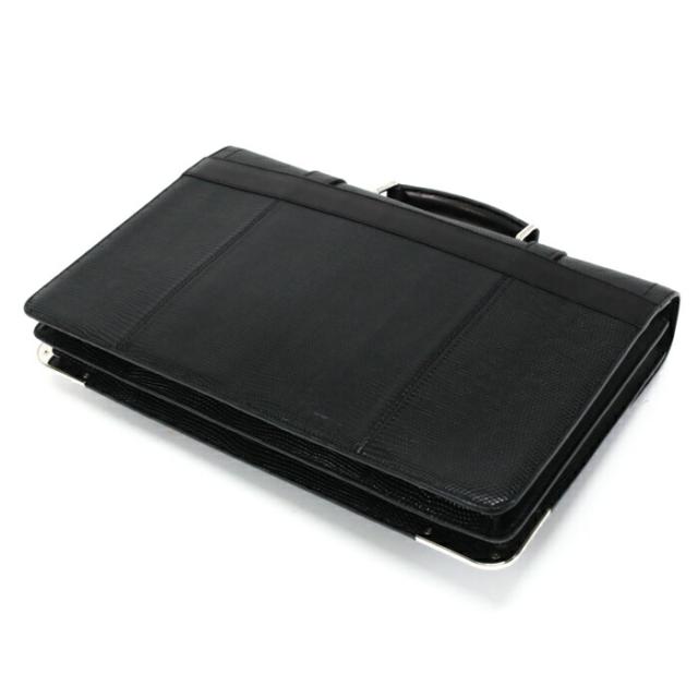 ラリー ビジネスバッグ リザード エキゾチック レザー SV金具 ブリーフケース 旅行かばん メンズ ノワール (ノワール)
