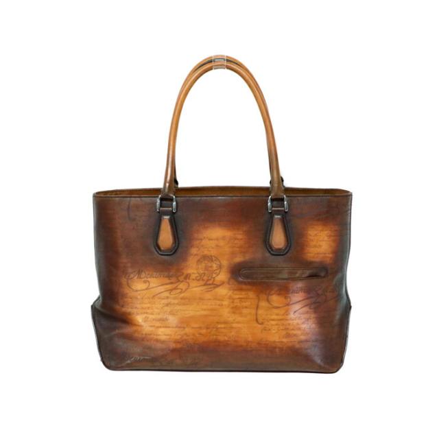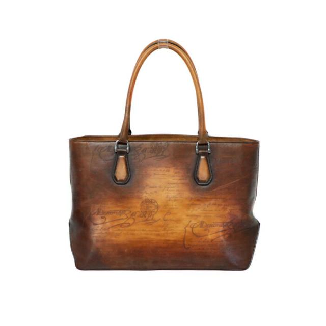 【Bランク】 ベルルッティ Berluti トゥジュール (TOUJOURS) スクリットレザー カリグラフィー パティーヌ トートバッグ 肩掛け ビジネスバッグ ベネチアンレザー イタリアンレザー メンズ ブラウン 正規品 中古 mbd22001