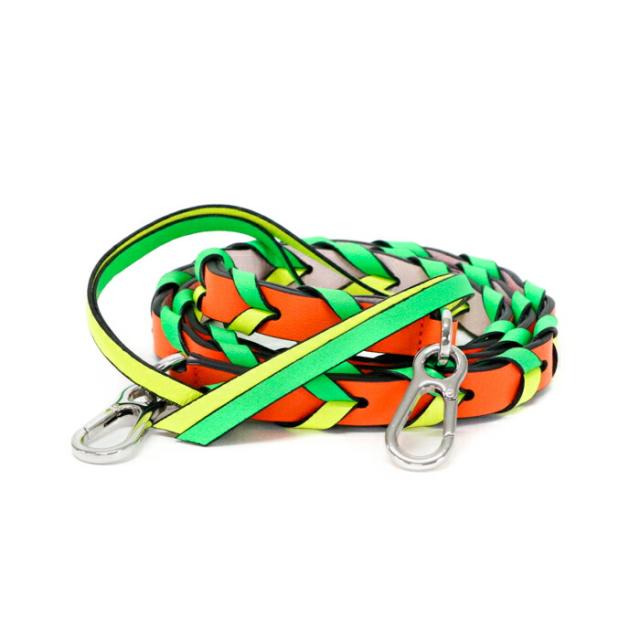【SAランク】 ロエベ LOEWE ブレイデッドミニ ショルダーストラップ ネオンカラー カーフスキン (レザー) C073Y37 バイカラー 編み込み ショルダーストラップ 交換用 レディース オレンジ / ピンク / グリーン / イエロー 極美品 中古 mbg18008