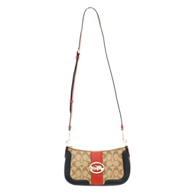 【ABランク】 コーチ COACH ジョージーバゲット レザー PVC シグネチャー 5498 ショルダーバッグ クロスボディ レディース メンズ ベージュ / レッド / ブラック 中古 mal08009