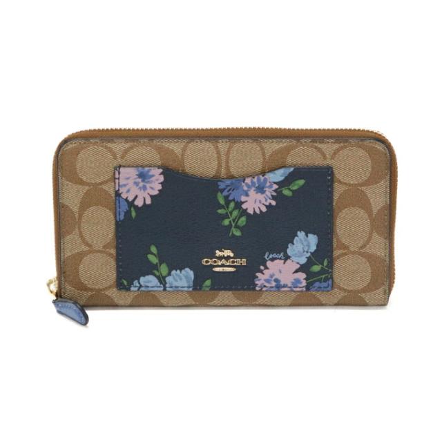 【ABランク】 コーチ COACH アコーディオン ウォレット PVC レザー シグネチャー フラワープリント F73011 長財布 ラウンドファスナー ロングウォレット 花柄 レディース ベージュ / ブルー / ピンク 中古 mbg12008