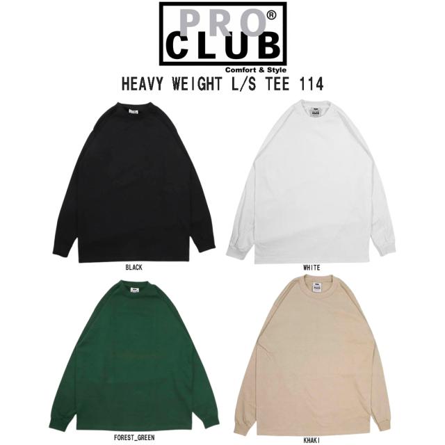 PRO CLUB(プロクラブ)Tシャツ クルーネック 長袖 厚手 ロンT 無地 ヘビーウェイト コットン シンプル カジュアル ストリート 大きめ HEAVY WEIGHT L/S TEE 114