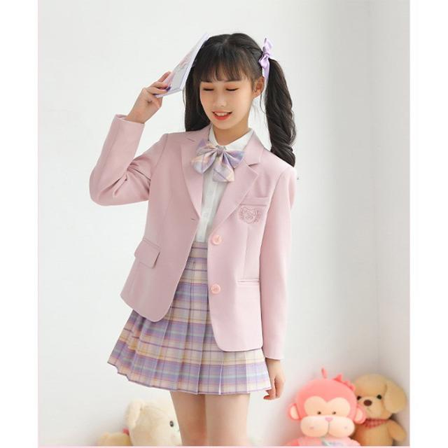 キッズスーツ 入学式 卒業式 制服 学生服 ジャケット スカート シャツ 女の子 セット 小学生 中学生 JK ジュニア 大きいサイズ ゆったりサイズ 七五三 お受験 発表会 ピンク dx009x0x0h5