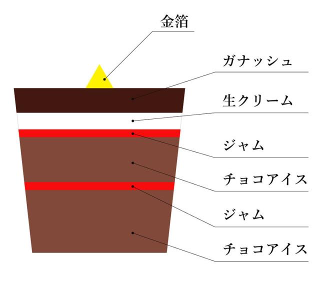 ○原材料:乳製品(国内製造)、砂糖、カカオマス、ココア、ブドウ糖、卵黄、杏子、ラズベリー、水飴、洋酒、金箔、増粘多糖類、(一部に乳成分・卵を含む)