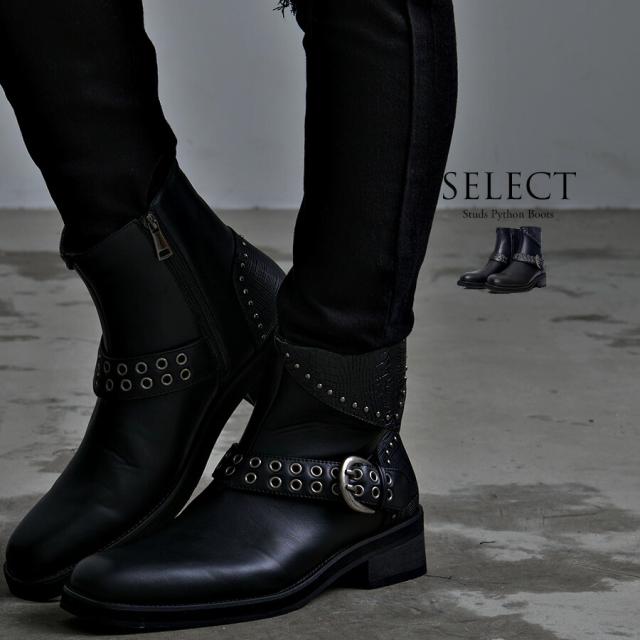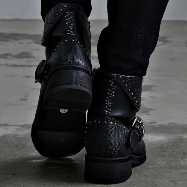 ブーツ メンズ ブランド おしゃれ PUレザー エンジニアブーツ ヒールブーツ クロコ スタッズ 靴 シューズ 地雷系 サブカル系 ヴィジュアル系 ビジュアル系 V系 原宿系 カジュアル ストリート系 韓国系ファッション 服 きれいめ 大人 00s風 メンズファッション [CLE-752]