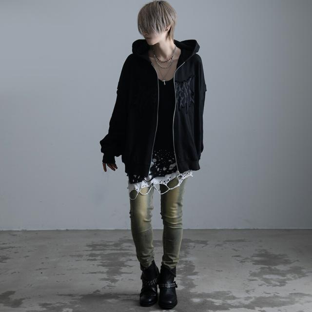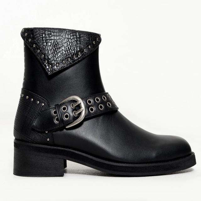 クロコ型押し仕様の折り返しデザインにスタッズを打って雰囲気抜群のヴィジュアル。