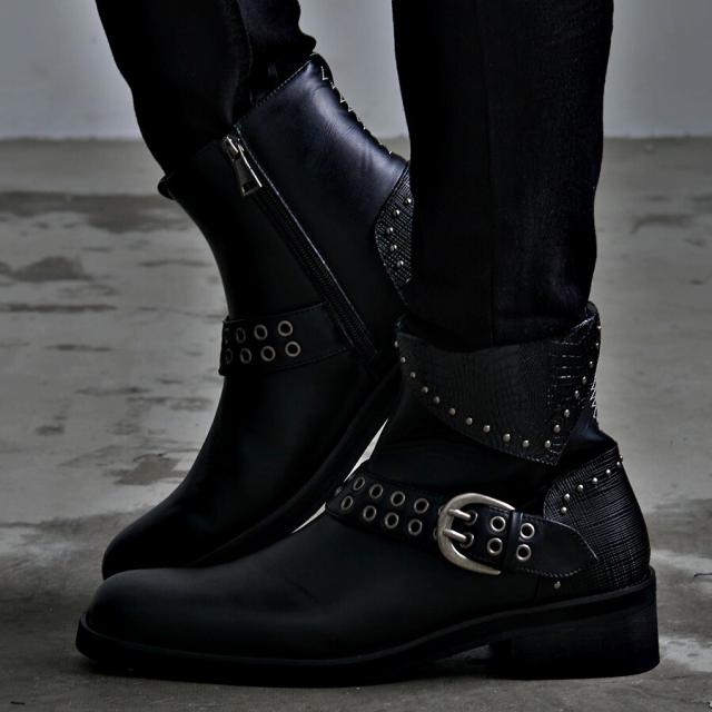 2連アイレットベルトがインパクトあるデザインブーツ。