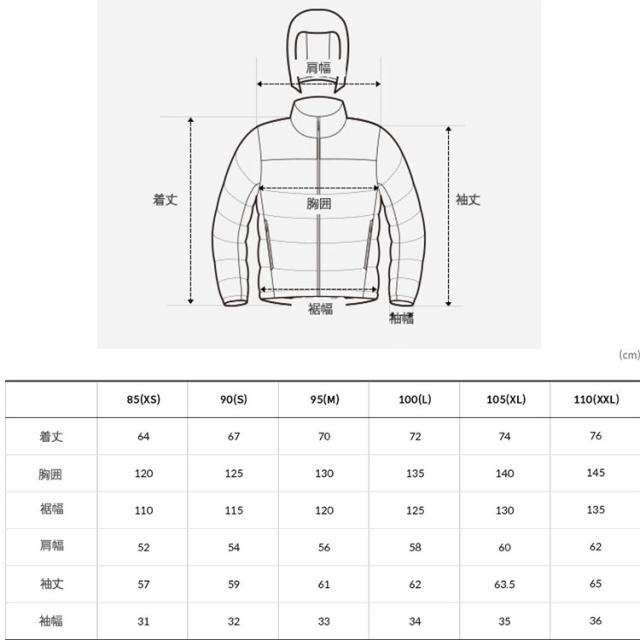? 中綿1(胴体・袖部分): ダックダウン 90%、フェザー 10%