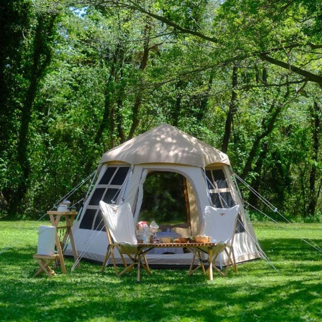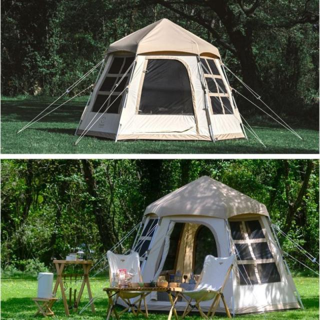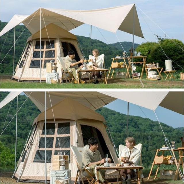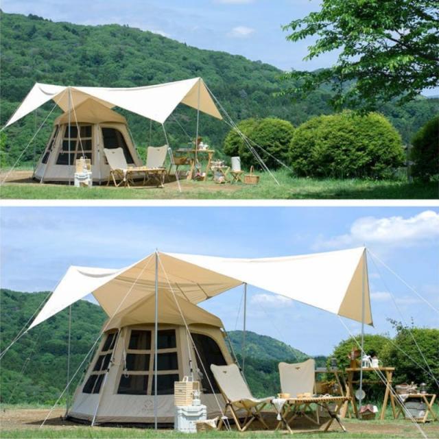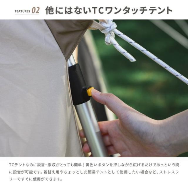 テント 1人用 2人用 3人用 ワンタッチテントのようにストレスフリーで組み立て可能なポリコットン素材のテント 室内は高さが2メートル以上あり屈まずに広々快適 大きなメッシュ窓付