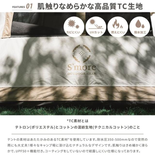 Smore スモア Latte Lodge ラテロッジ ワンタッチTCテント 組立簡単な本格的なキャンプテント ポリコットン素材 UPF50+でUVカット 撥水加工でカビにくい 1〜3人用 ソロキャンプからカップルや友人などのキャンプテントに最適 公園でのポップアップテント代わりにも