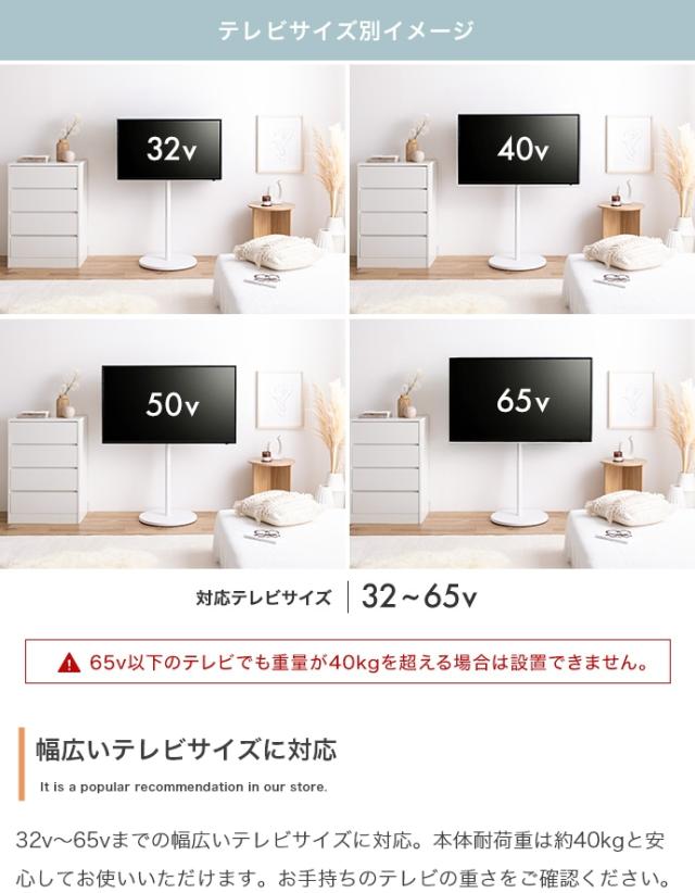 32〜65インチのテレビに対応し、耐荷重は約40kg。
