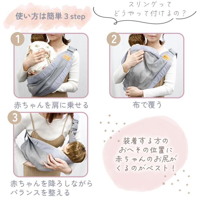 ベビーメッシュスリング/ベビースリング/メッシュ/スリング/新生児/抱っこ紐/抱っこ/コンパクト/軽量/横抱き/メッシュ生地/春/夏/オールシーズン/赤ちゃん/あかちゃん/抱っこひも/通気性/幼児//お出かけ/旅行/外出/シンプル/男の子/女の子/メッシュ素材/バックルスリング/抱っこヒモ/肩/ショルダー/ベビーキャリー/出産祝い/首すわり前/出産準備/だっこひも/だっこ