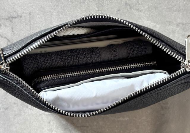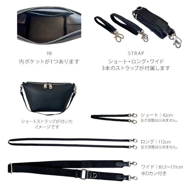 | サイズ | 高さ:12cm 開口部横幅:22cm 下部横幅:14cm マチ:9.5cm ショートストラップ:42cm(金具部分含む)長さ調整はできません。 ロングストラップ:112cm(金具部分含む)長さ調整はできません。 ワイドストラップ:85.5-131cm(金具部分含む) ※厚みのある財布やProMaxなど大き目のスマホは入らない場合が多いです。 予めご了承ください。 |