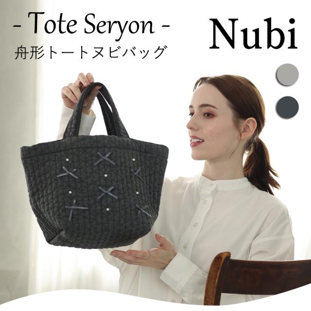 ヌビバッグ リボン パール 舟形トートバッグ【Tote Seryon トート セリョン】 サブバッグ マザーズバッグ イブル キルティング チャコールグレー グレー アイボリー 軽量 大容量 韓国製 大人