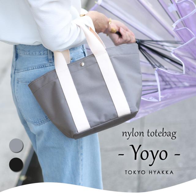 舟形 撥水 ナイロントートバッグ【Yoyo ヨーヨ】 ハンドバッグ 梅雨 はっ水 レディース 手持ち レザー調ハンドル かばん カバン 鞄 大容量 中敷き 内ポケット付 軽量 黒 大人