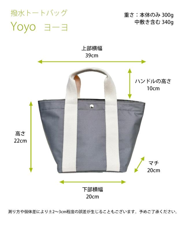 | 重量 | 約300g(バッグ本体のみ)中敷き含む:340g |