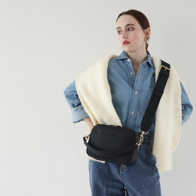 ・ワイドストラップは本革を採用しスパイスの効いた差がつくコーデを。