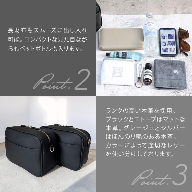 | サイズ | 高さ:16.5cm 横幅:24cm マチ:9cm 外ポケット幅:22cm ワイドストラップ:99.5〜119.5cm(5cmピッチ・4段階調節) ノーマルストラップ:116〜130cm(3.5cmピッチ・4段階調節) ショートストラップ:43cm ※サイズは計測方法・部分により多少の誤差が出ることがございます。 予めご了承ください。 |
