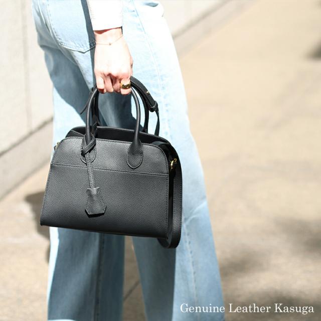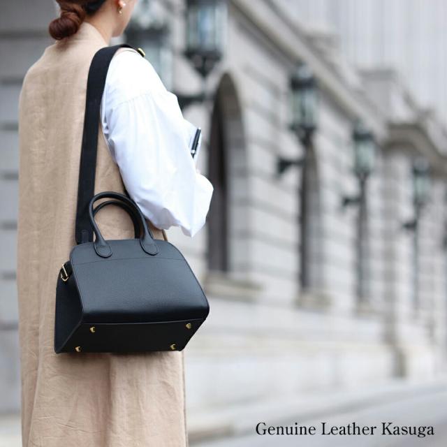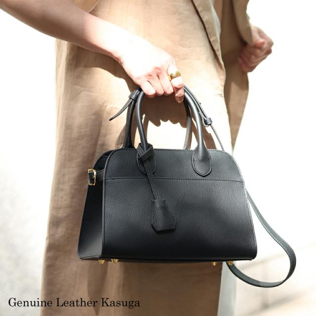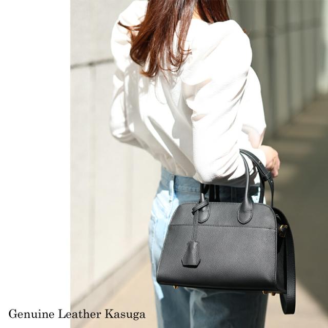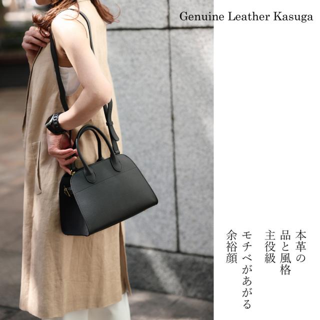 本革 ハンドバッグ【Kasuga カスガ】 トートバッグ ショルダーバッグ 肩掛け 斜めがけ レディース レザーバッグ 黒 大人 通勤 セレモニー 学校行事にも