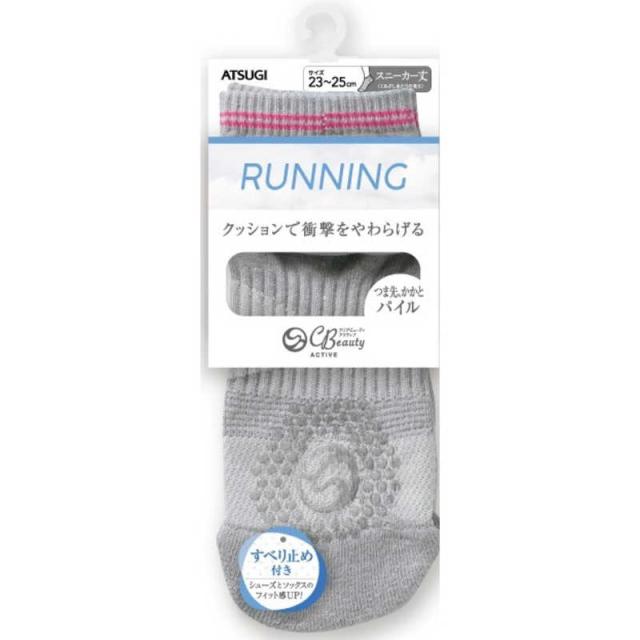アツギ クリアビューティ アクティブ(RUNNING)すべり止め付き スニーカー丈 スポーツソックス 23-25cm グレー