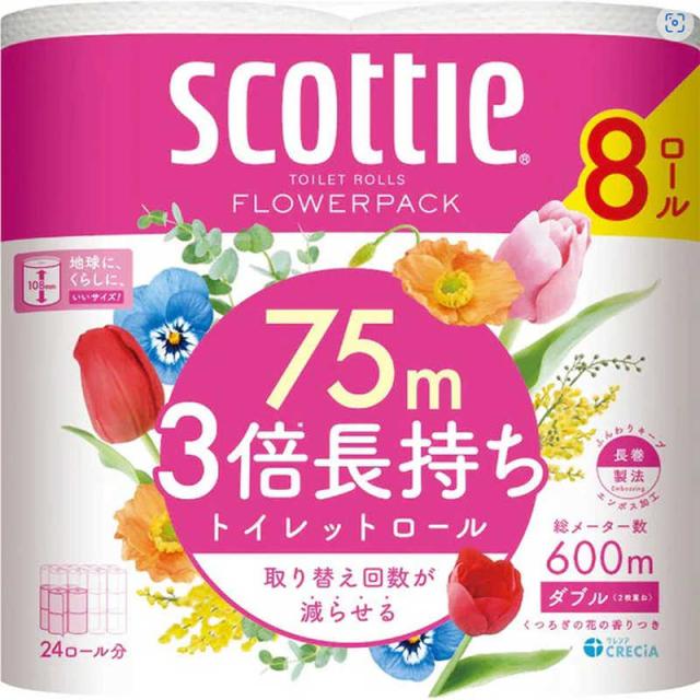 日本製紙クレシア scottie(スコッティ)フラワーパック 3倍長持ち 75m 8ロール ダブル くつろぐ花の香りつき