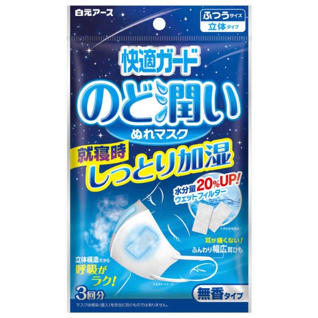 白元 快適ガードのど潤いぬれマスク 無香タイプ ふつう 3セット 快適ガード