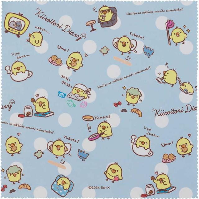 リラックマの大人気テーマ「キイロイトリダイアリー」 可愛い手描き風タッチ柄のメガネ拭き!