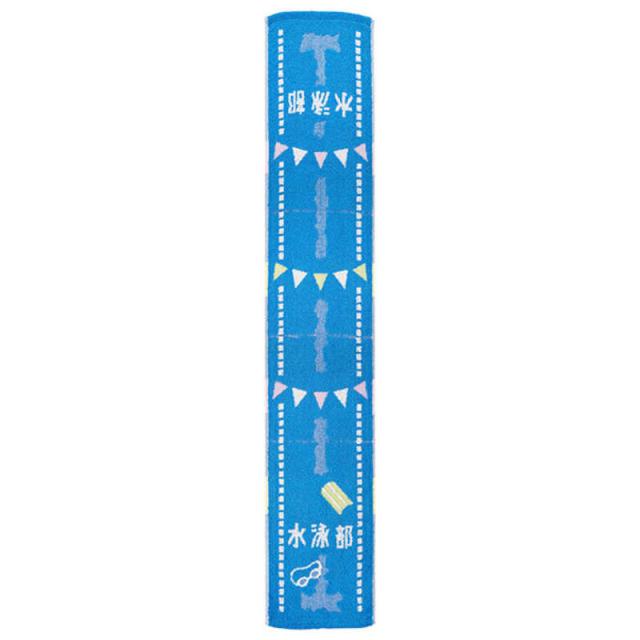 首にかけるとタオルに書かれた部活の名前が読めるようになっています。