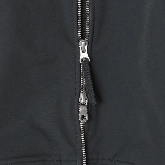衿部分のリブはダブルに重ね、ジップは少し光沢のある素材を使用し、スライダー部分にはボディと同色の引き手を採用。シンプルながらも都会的な印象に落とし込みました。